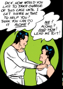 Then, exactly two panels later, he decides that Robin’s the best lad for the case: