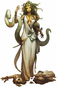 - Obstacle: The characters must avoid being turned to stone by the gorgon and must either frighten her out of the area or get her to look into her own reflection, turning her to stone.