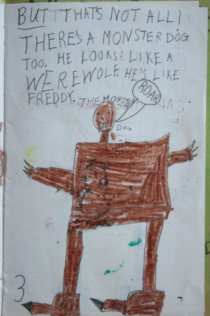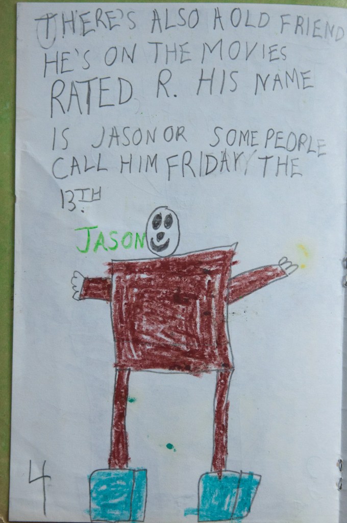 The truth is that Freddy is supposed to resemble Freddy Kreuger from the Nightmare on Elm Street franchise. For some reason, a ton of my 1st-grade friends has seen those movies. I tried to pretend that I had as well, but as you can see my impression is pretty poor. Years later I would watch at least one of the Nightmare on Elm Street films, and…it turns out that I don’t really like them all that much.