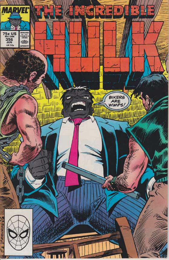 Like Byrne, Milgrom left with a bunch of dangling plot threads, and then Peter David came on for his long, long run on the character. In twelve years on the book, David only missed two issues: one due to the death of a friend and another due to his disagreement with an editorial mandate. That’s pretty impressive, especially for a marketing guy. Whether it was a good thing for the character depends on whether you enjoy David’s writing style. On the one hand, he delved deeply into not only the Hulk’s psyche but also the personalities and backgrounds of his supporting cast. He introduced a lot of new and interesting characters and told mostly solid stories. On the other hand, he seems to have a love of puns and topical humor which find their way into all of his writing, and the Hulk is no exception. Seeing the Hulk act out a scene from Young Frankenstein is definitely amusing, but not necessarily something I want to see in the actual comic. As he got more comfortable, David also tended to insert a bit of his own political leanings here and there, making for a couple of heavy-handed “very special issues” but also an excellent story about AIDS in the 1990s that landed on my list of awesome Hulk moments.