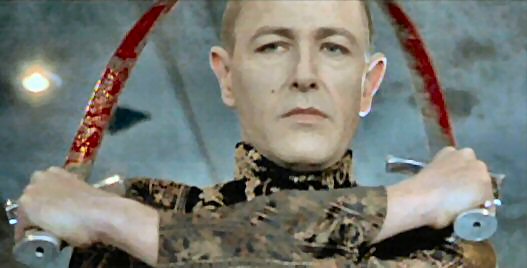 The movie really wants to present Kell as some sort of supervillain, but fails to do so effectively. All the action at this point has been handled by his mooks. His screen presence is basically nonexistent. He effectively does nothing for 90% of the film except deliver boring speeches, chew scenery, and talk about how naughty he is. The promise made by the trailer was an immortal with powers beyond his kin who could not be defeated by only one MacLeod. Instead, the film just gives us a guy with a gun.