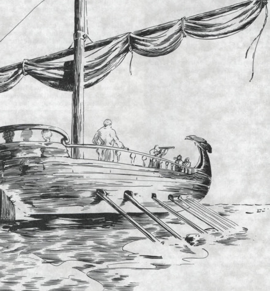 “As dawn comes, the breeze coming down from the northwest dies. The Queen of the Night becomes a rather large target wallowing in the light swell in the center of the Reach, all too exposed to the eyes of Zhentarim on griffonback. Sure enough, a Zhentilar patrol galley bristling with archers soon appears, rowing steadily toward the drifting slave galley. Battle erupts.”