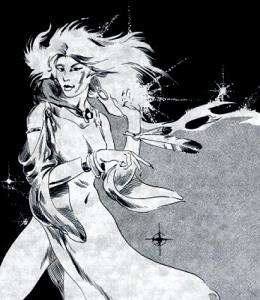 Before your eyes, the dwarf’s squat, hairy form twists and flows, colors scattering across its moving surface like a brief rainbow, and becomes taller and slimmer, until a young, dark-eyed woman in robes stands before you. She smiles. “I am Sharoon, of the Harpers. Some time ago Elminster asked me to look out for you, if ever you came this way.”
