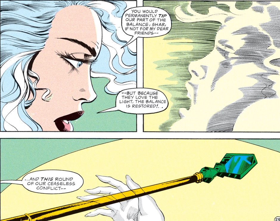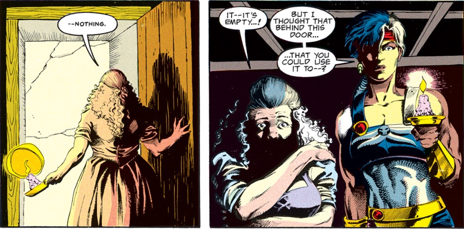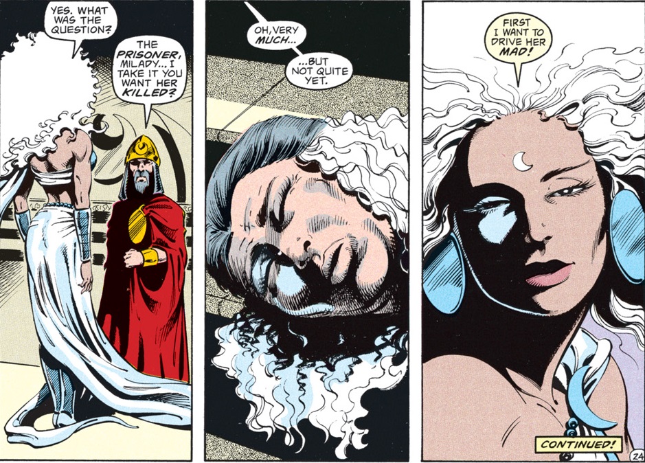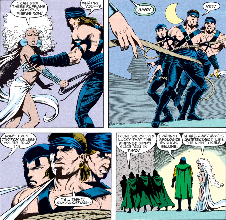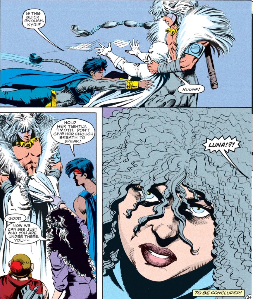 The truth is that the false Selûne is Shar. Anyone who is familiar with the Forgotten Realms as they have existed over the past 40 years probably already guessed that, but this comic served as many people’s introduction to the setting–and their first glimpse at the eternal war between Selûne and Shar.