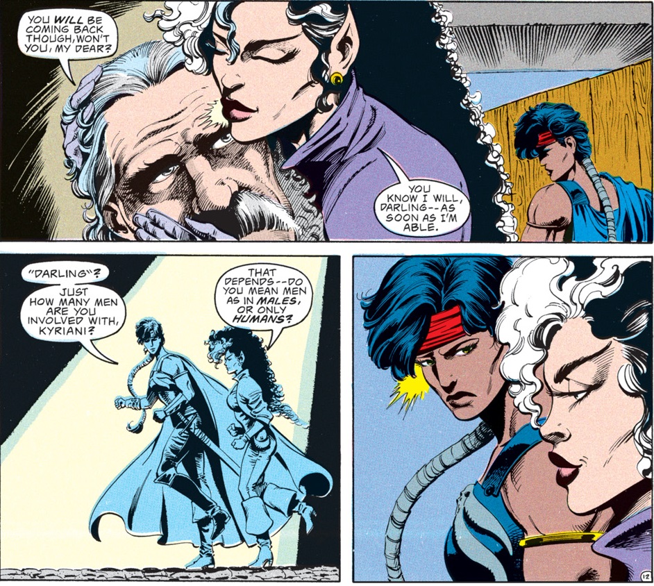 The implication in those last two panels is that Kyri gets around with a lot of non-human lovers, but through a modern lens it could also imply that she has had more than a few pansexual escapades. Hm…I wonder if she knows the drow twins from Baldur’s Gate 3…?
