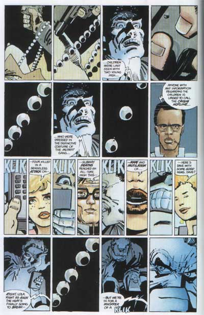 Two years after The Dark Knight Returns, Alan Moore wrote the one-shot The Killing Joke, which explored the Joker’s tortured mind and his possible past. Although it didn’t have a major impact on Batman’s powers or look, it continued moving him toward the humorless vigilante of today. The Joker also stopped being someone that readers could see as remotely harmless as he shot Barbara Gordon (aka Batgirl) in the spine, ending her costumed crimefighting career for decades, then attempted to drive Commissioner Gordon insane by stripping him naked and tormenting him with pictures of his wounded daughter.