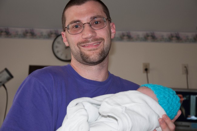 I work very hard on my budgets, and I know what I can and can’t afford. A new son meant that a new camera was definitely not a possibility. My wife tested the potentially damaged camera by taking this incredibly awkward first photo of me and my son: