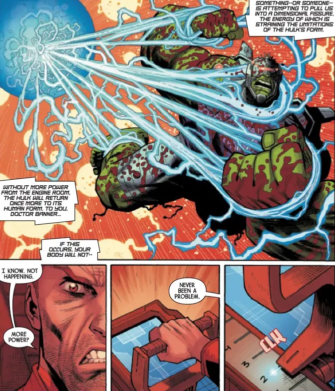 Basically, Banner stopped manifesting in the real world, allowing the Hulk to take control full-time. However, inside the system’s mind, the Hulk is a ship piloted by Banner. This opens the door to space travel, sci-fi thrills, and a lot of crazy action scenes that don’t make much sense when you examine them.