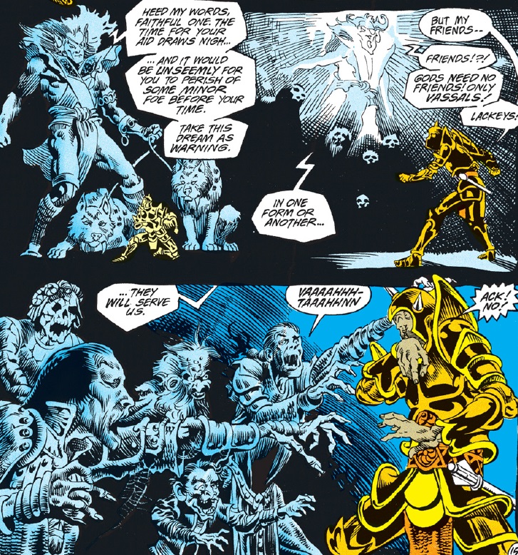 The dream is actually a warning from Labelas Enoreth, Vartan’s god and somehow who designated him as a pawn in the previous story. Despite being good-aligned, Labelas is something of an old school deity who doesn’t care much for mortals. As such, he encourages his cleric to save himself and leave his friends to die.