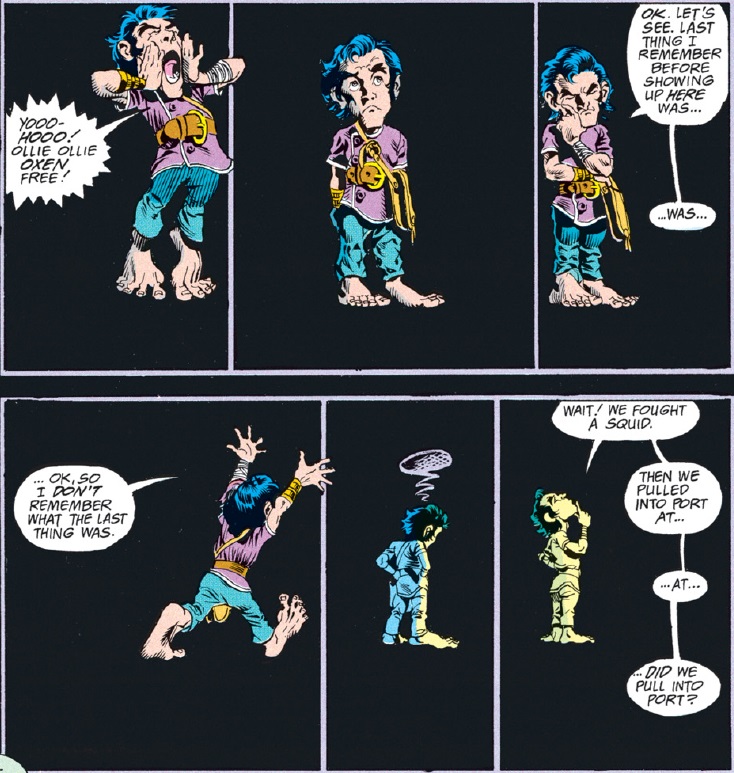 After an exciting battle against a giant squid in the last issue, the Realms Master pulled into port and something happened. Whatever that something was, we begin this issue with Foxy wandering through a black void.