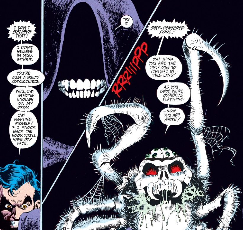 Given the setting, it’s really hard to figure out if Foxy was simply hallucinating the giant drug-spider or if it was a real extraplanar entity. The multiverse has a demiplane of ooze…why not a demiplane of addiction?