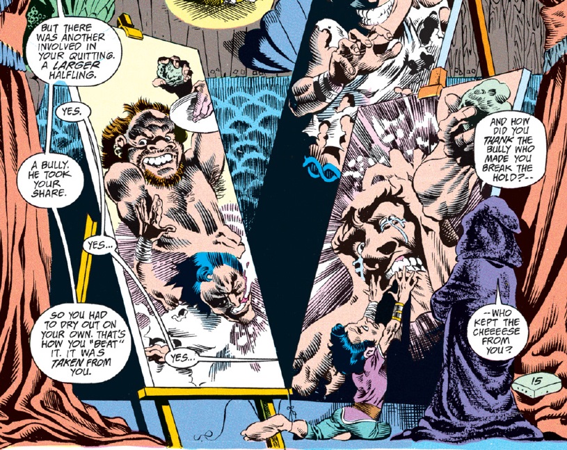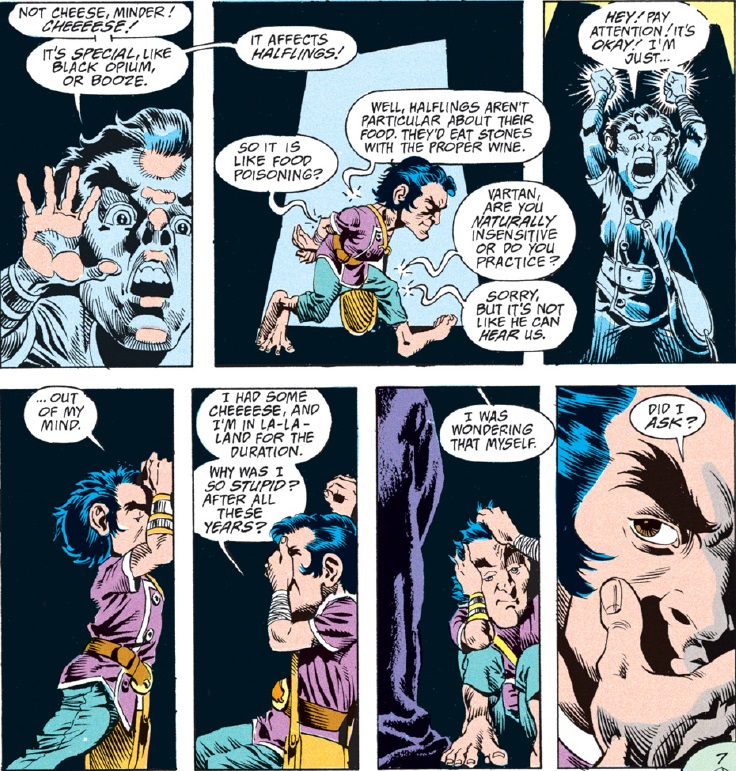 Perhaps it’s because the Forgotten Realms is already filled with over-the-top situations, or perhaps it’s because the story focuses on an addict’s perspective, but “Head Cheeese” works pretty well as an exploration of addiction and recovery. Don’t let the goofy title fool you–this is a pretty serious story that has a lot of heart.