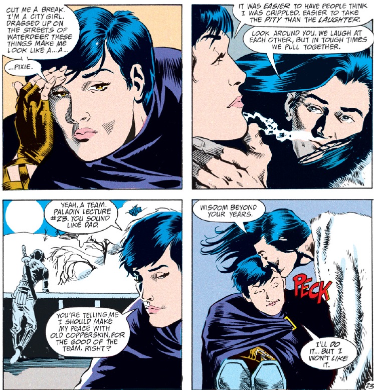 There is an unfortunate line just before this scene where Jasmine refers to Ishi as “copper-skin” in her internal monologue. I’d say that aged poorly, but I’m pretty sure that making the color of someone’s skin a pejorative shouldn’t have flown in the 1990s, either. It’s another one of those instances where D&D and its related media has unfortunately been way behind the times.
