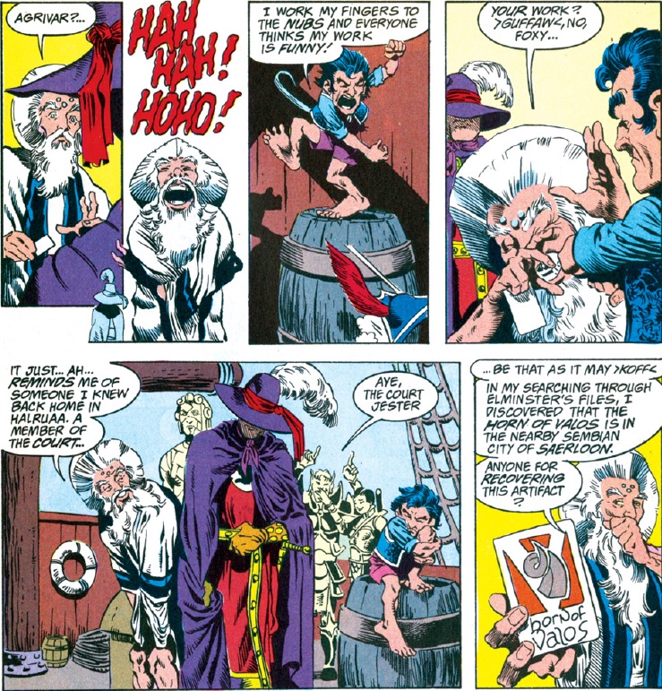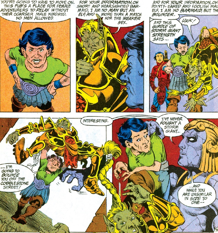Ishi’s characterization gets on thin ice with me here. She’s already dangerously close to being nothing more than the “honorable eastern warrior” stereotype, and now that the hints of feelings toward Agrivar are showing themselves she’s facing the danger of her role in the story being about her relationship rather than herself. However, she does sometimes break from the stereotype, and her relationship with Agrivar has been building since she tried to kill him in “The Hand of Vaprak,” so there is hope that she won’t become too flat of a character.