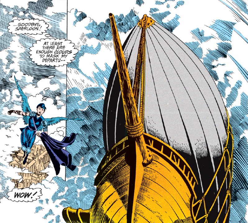 Jasmine decides that Saerloon has gotten too hot, so she opts to fly away. The sudden appearance of a flying ship, however, gives her pause.