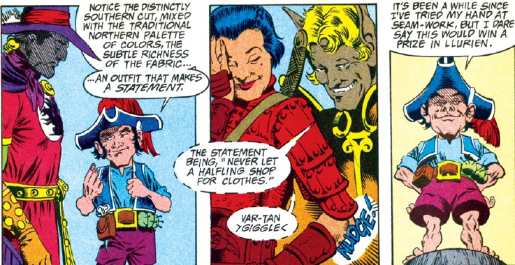 Our story starts off with some lighthearted tomfoolery. Foxy has plied his skills as a tailor to create a new look for Agrivar. Unfortunately, the halfling’s taste in fashion doesn’t mesh with the rest of the crew.