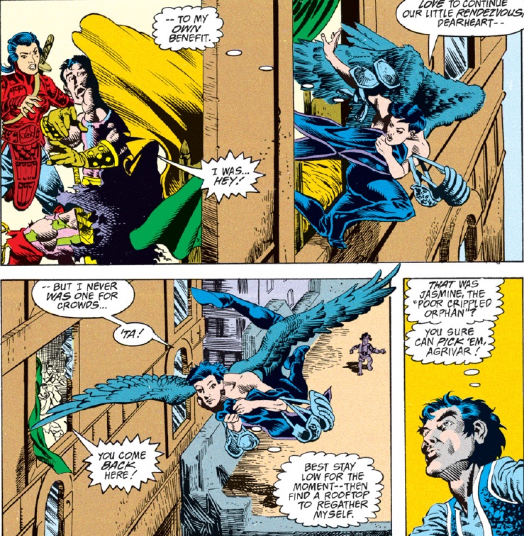 We don’t find out why Jasmine has wings, but we do finally get a quiet moment where Agrivar can talk to Jasmine without it turning into a comedic romantic misunderstanding.