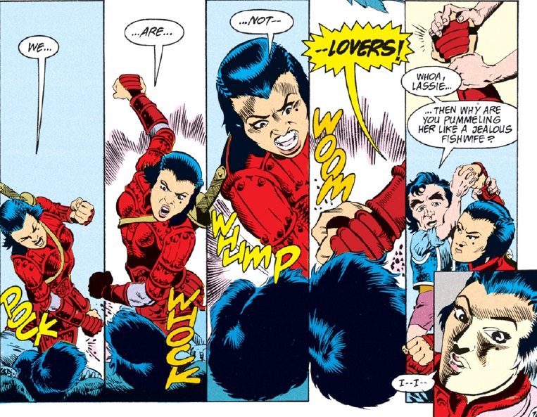 This isn’t to disparage writer Jeff Grubb specifically, as his storytelling in this regard is on par for most pop media in the early 90s. A view from my 2024 lens sees this as a missed opportunity for better storytelling, though. I feel like the romantic tension could seem less forced if the creative team had sought out someone who had a perspective closer to Ishi’s or at least pushed themselves to get out of their own comfort zones a bit.
