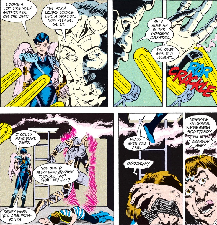 I usually try to focus on the story beats when I provide these scans, but in this case I can’t resist showing off this unrelated bit of banter between Ishi and Vartan: