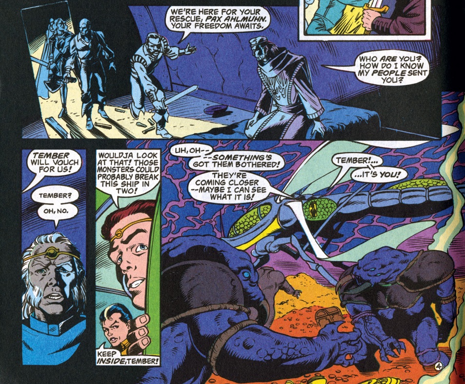 Our last adventure ended rather abruptly with Jasmine’s kidnapping. The resolution to that story doesn’t happen in the pages of the Forgotten Realms comics, though. Instead, DC tried to introduce a new line of D&D comics, bringing in the brand-new Spelljammer setting.