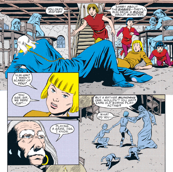 The kids run into Parwyyd Hanifar (who was last seen during “The Ostus Legacy“), knocking him down. Parwyyd seems nonplussed by the accident, but suggests that the kids might have more fun playing a different kind of game.