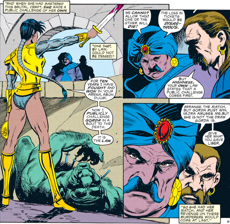 For the next ten years, Vajra fights in the arena, all the while looking for a time when she can get revenge for Liber’s death.