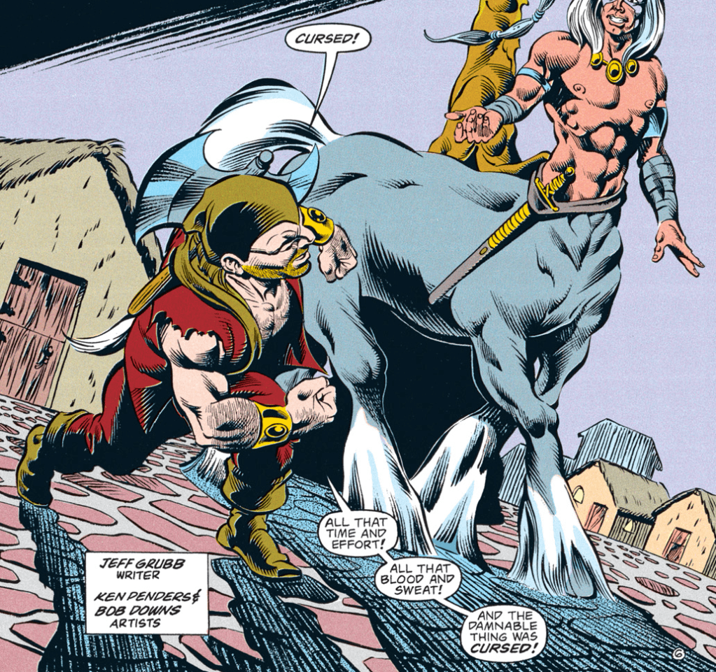 D&D is the original role-playing game, yet the media that ties into it very rarely leans into the “game” aspect of it. That’s natural, since it’s hard to handle that sort of fourth wall breaking without feeling trite. “Players,” the tale told in the 1990 Advanced Dungeons & Dragons Annual, manages to subvert that by simultaneously fleshing out our cast of heroes and presenting them as characters in a game. All it takes is a little magic…