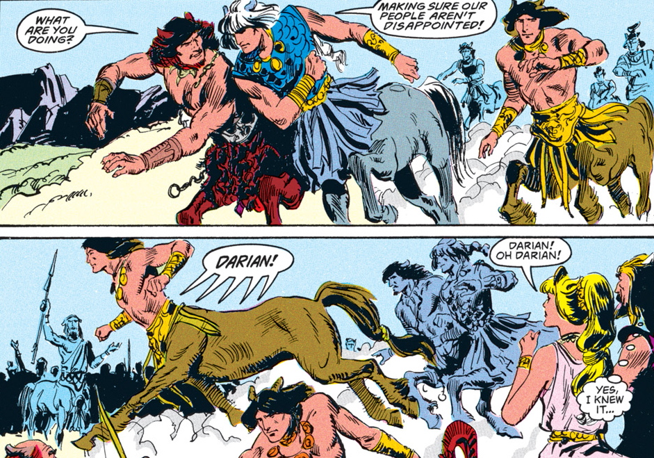 Our final child gets to take the role of Timoth…which is pretty special, considering that centaurs wouldn’t become an officially playable race until The Complete Book of Humanoids hit the shelves two years after this series got canceled.