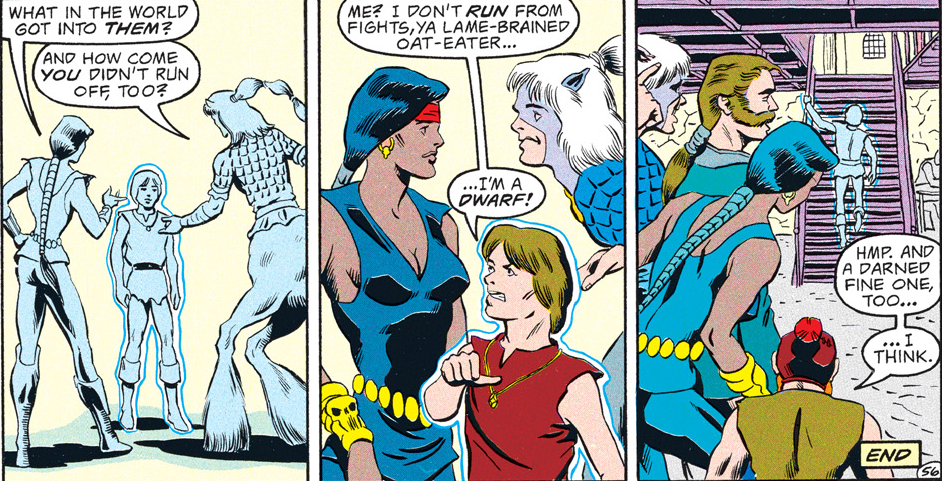 By 1990, DC Comics had four concurrent Dungeons & Dragons comics running: Dragonlance, Spelljammer, and two Forgotten Realms titles. A TSR Worlds Annual one-shot that year tied all four settings together, while the Forgotten Realms Annual featured a crossover between the two Toril-bound adventuring groups. Meanwhile, the Advanced Dungeons & Dragons Annual went for something much smaller, but very fun…