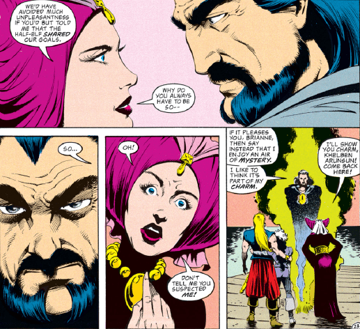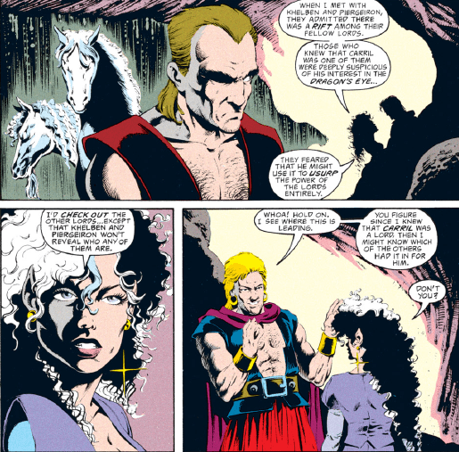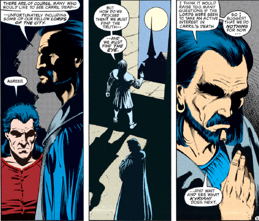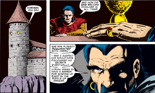 It’s no secret that I really like Kyriani, especially after her makeover during “The Ostus Legacy.” Once she combined her “good” and “evil” halves, she became confident, charming, and clever. Her flirtatious ways, usually avoided in 1990s fantasy heroines, are something she has no shame over but do not define her character. So I should be very happy that she gets a story arc focused on her, especially since she’s been mostly a side character since “The Ostus Legacy.”