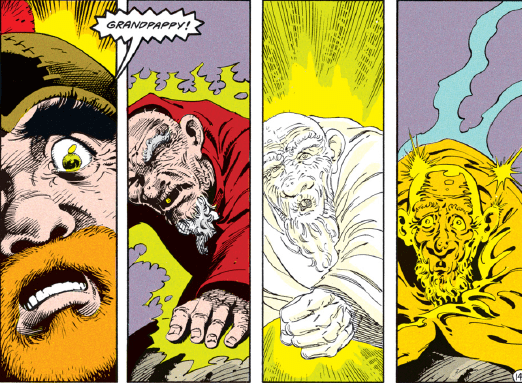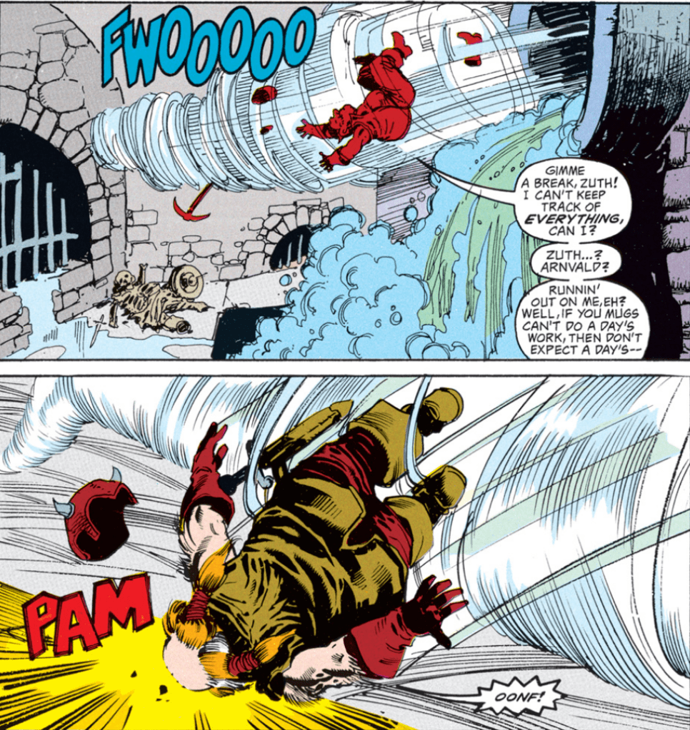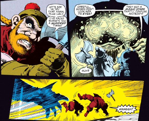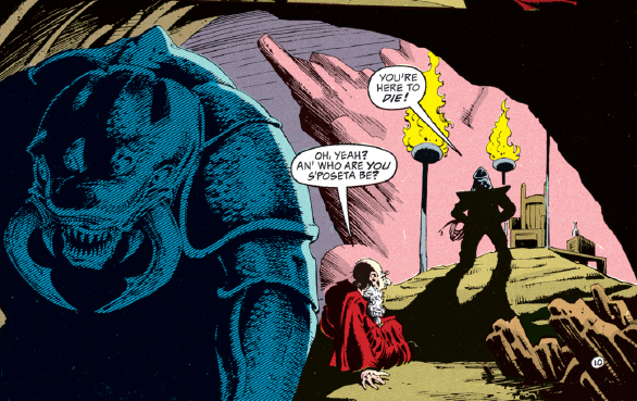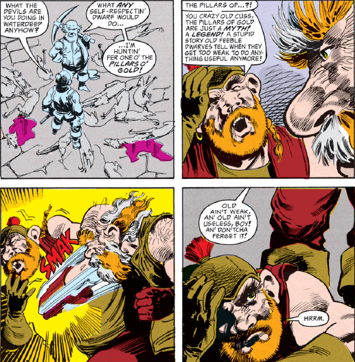 The entire story spans two issues, for a total of 48 pages. I’m completely there for it for 45 pages. To have a god show up, give the heroes a magical solution, and kill the villain in the last three is pretty bad, though. There was no chance for Onyx to get through to Grysyngoth or even call upon Khelben for help; instead we get something that would literally be a deus ex machina if there were a machine involved.
