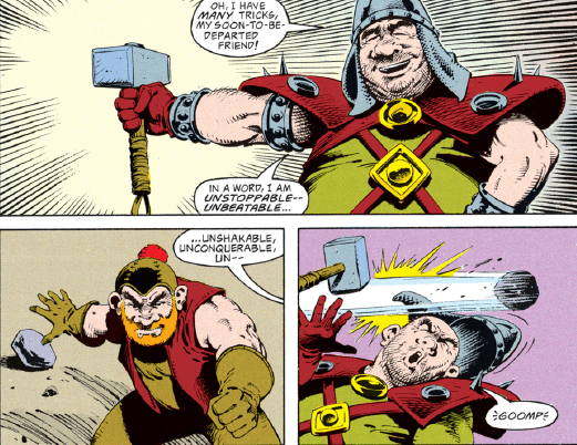 Onyx overpowers Grysyngoth, so the villainous dwarf tries to rely on bribery to save his skin.