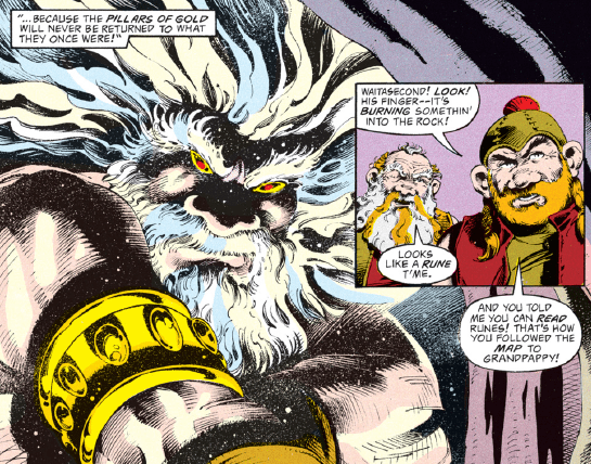 Pappy reads the rune and revives the Pillars of Gold. Grysyngoth does not take it well.