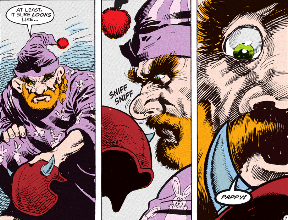 I think it’s notable that Onyx can identify his father’s helmet by its smell. Dwarves aren’t known for their keen olfactory senses, so I have to assume that the old man uses skunk musk as a conditioner or something.