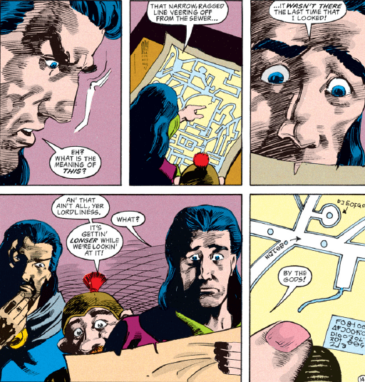 Khelben teleports over to Piergeiron Paladinson, who is just washing his face. Piergeiron prvides a map of Waterdeep’s sewers which is magically updated…and now includes a new tunnel Onyx’s pappy was digging.