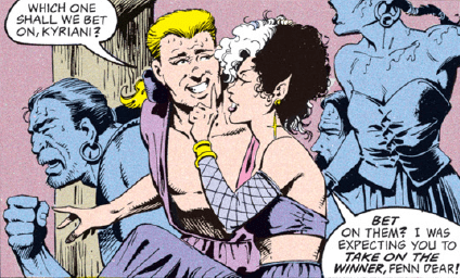 Kyri is hanging out with one of her lovers, a man named Fenn. I don’t remember if we’ve seen him before; with Kyri it’s hard to keep track.