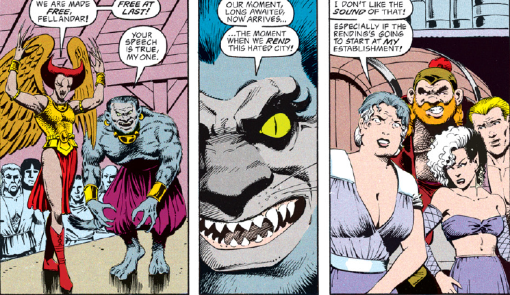 That furry monster is named Fellandar the Mage Killer, and he’s so upset when Onyx doesn’t recognize the name that he gives Onyx another tossing.