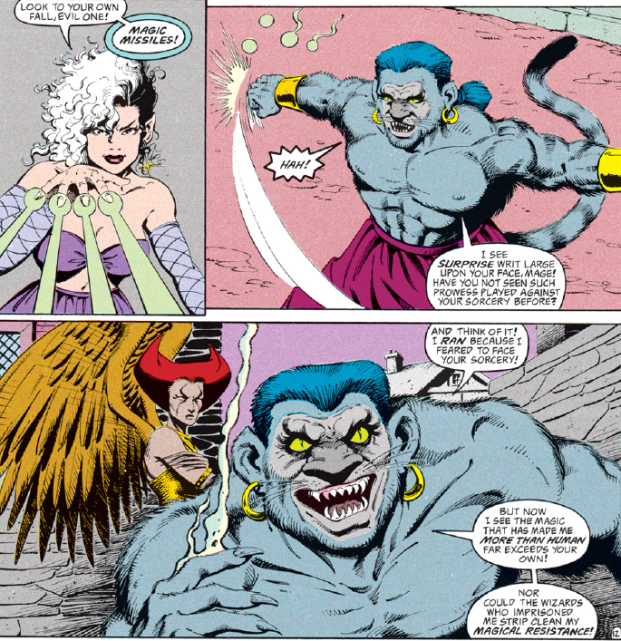 Unfortunately, the tide turns once again when our heroes’ feline foe realizes that his magic resistance trumps Kyri’s spells.
