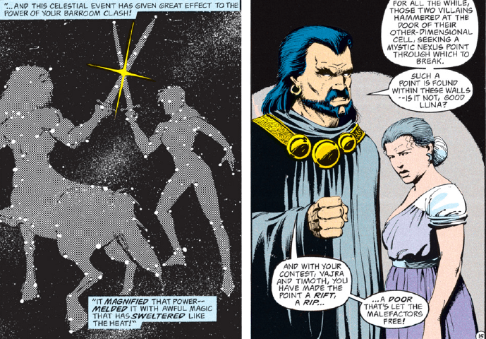 Once the pair are imprisoned again, Timoth and Vajra abandon their match, closing the rift. And Khelben, who knew darned well that the match risked causing untold death and destruction, still has the gall to complain when the bet he placed didn’t pay off.