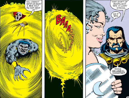 Of course, our heroes have an ace up their sleeves: the tavern is owned by the goddess of the moon. And while she prefers not to show her powers overtly, there are subtle ways she can influence the fight.