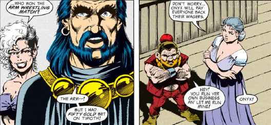 Our story takes place on the hottest day of the year. Timoth and Vajra have made a poor decision to have an arm-wrestling match, and Onyx is cleaning up as the two warriors are locked in a stalemate.