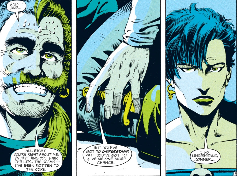 It’s quite sad, because for almost the entire series Conner has played the jerk with a heart of gold. Even with his biggest failing, abandoning Vajra, he had planned to rescue her but the plan didn’t work out.