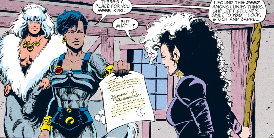 Kyri shows up a bit more often in 2nd edition Realmslore. She became one of the Masked Lords of Waterdeep in 1368 DR (about a decade after the events of this comic) and served as one of Khelben Arunsun’s secret agents with the Moonstars. She makes an appearance in the 2nd edition adventure For Duty & Deity, where she provides a path to the realm of Graz’zt so the PCs can save the goddess Waukeen. Apparently, she has a knack for aiding goddesses trapped in human form.