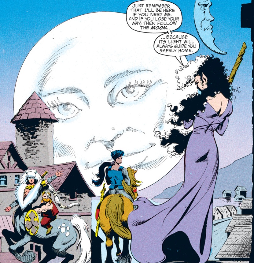 I’ve wanted Conner to get his comeuppance for a long time, and I was really irritated that he came out of “Spell Games” looking like a master manipulator. So on the one hand it’s nice to see everyone finally call him out for being so selfish. And Vajra is right in the dialogue above: this could have been avoided if Conner had asked for help. After all, he could have enlisted the aid of the goddess of the moon! But Conner always has to feel like he’s the most clever and capable out there. It’s always his plan, and anybody who doesn’t follow it, even when he doesn’t tell them the real plan, is the problem.