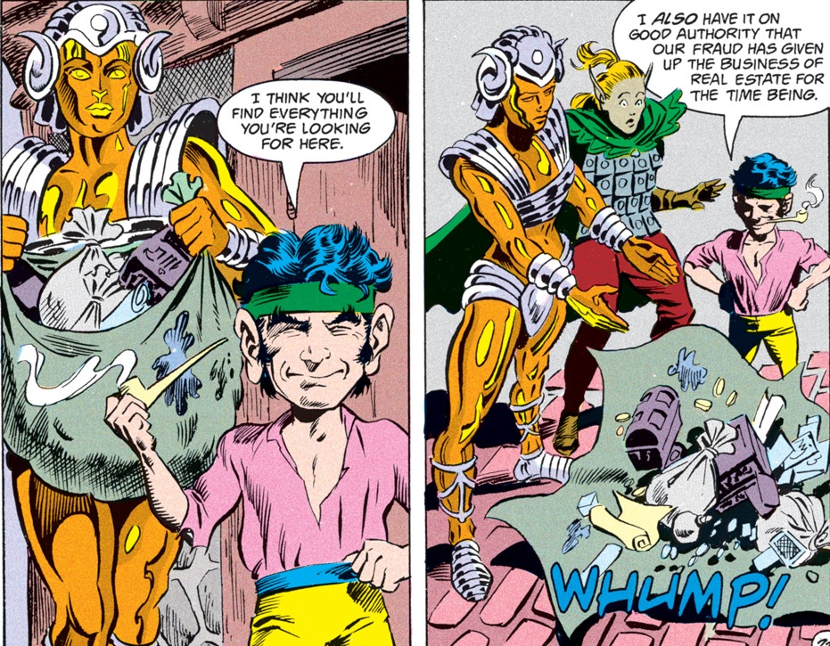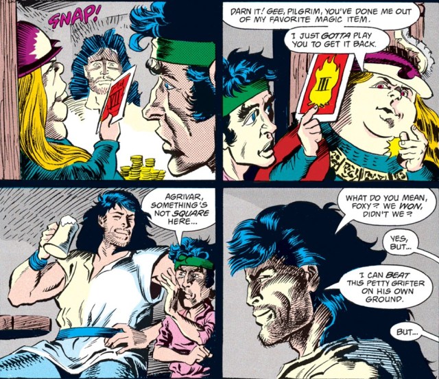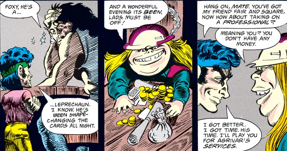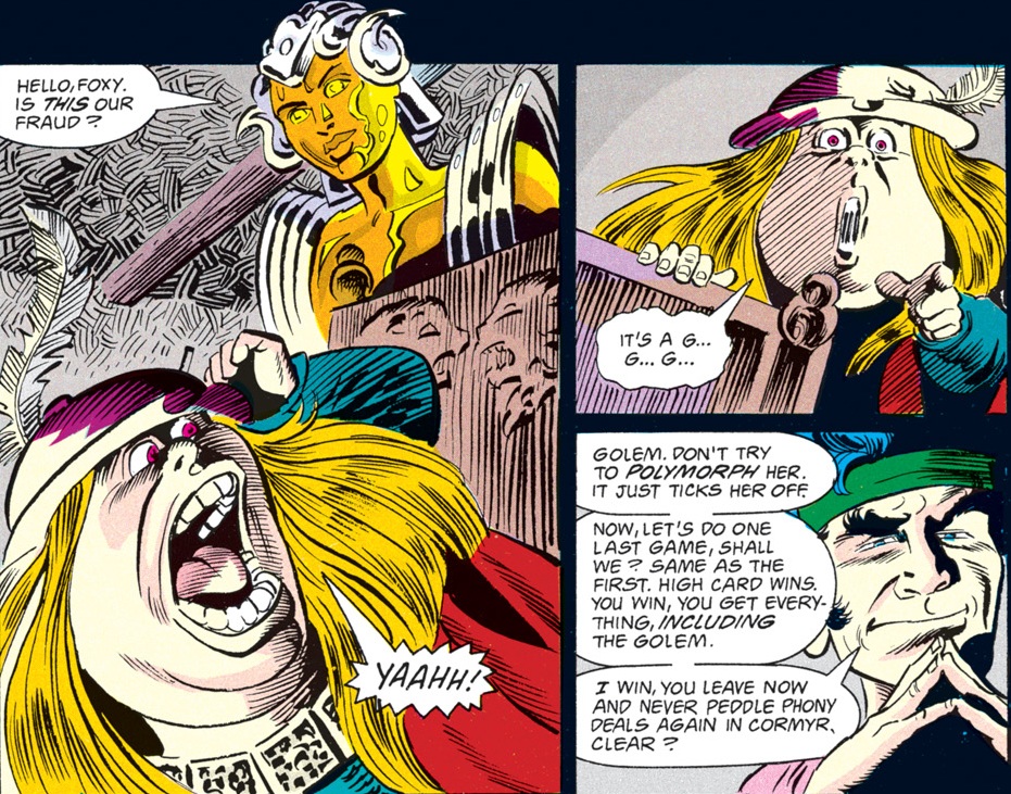Foxy loses game after game, putting Agrivar in the leprechaun’s service for a year and a day. Through it all, the halfling keeps a smile glued on his face. He soon reveals that he’s just playing for time, waiting for Minder to show up.