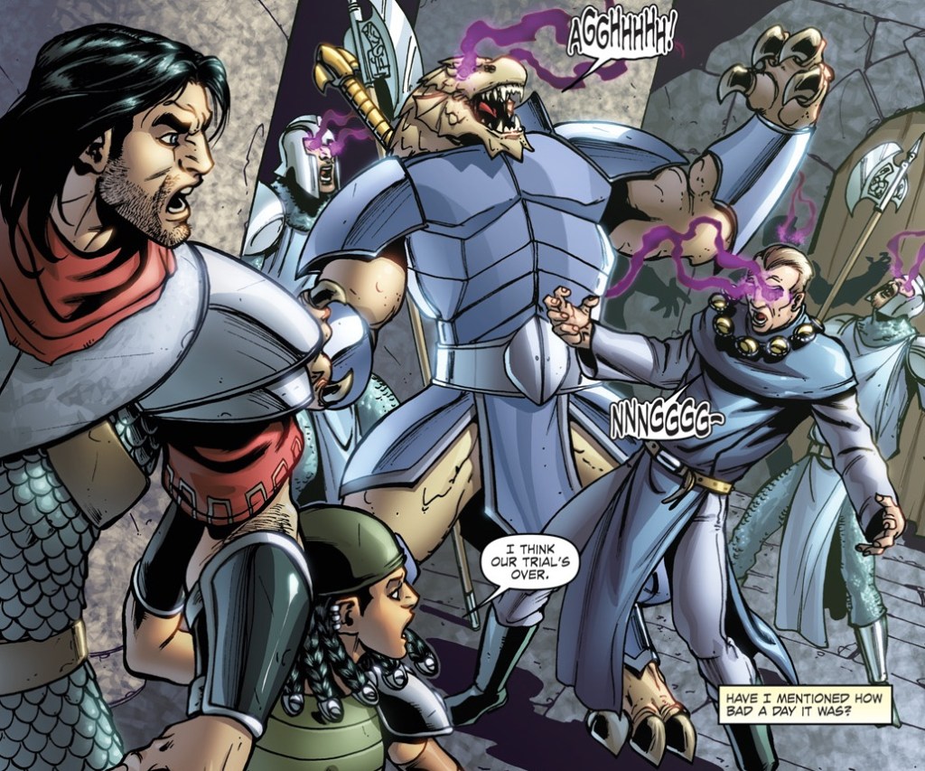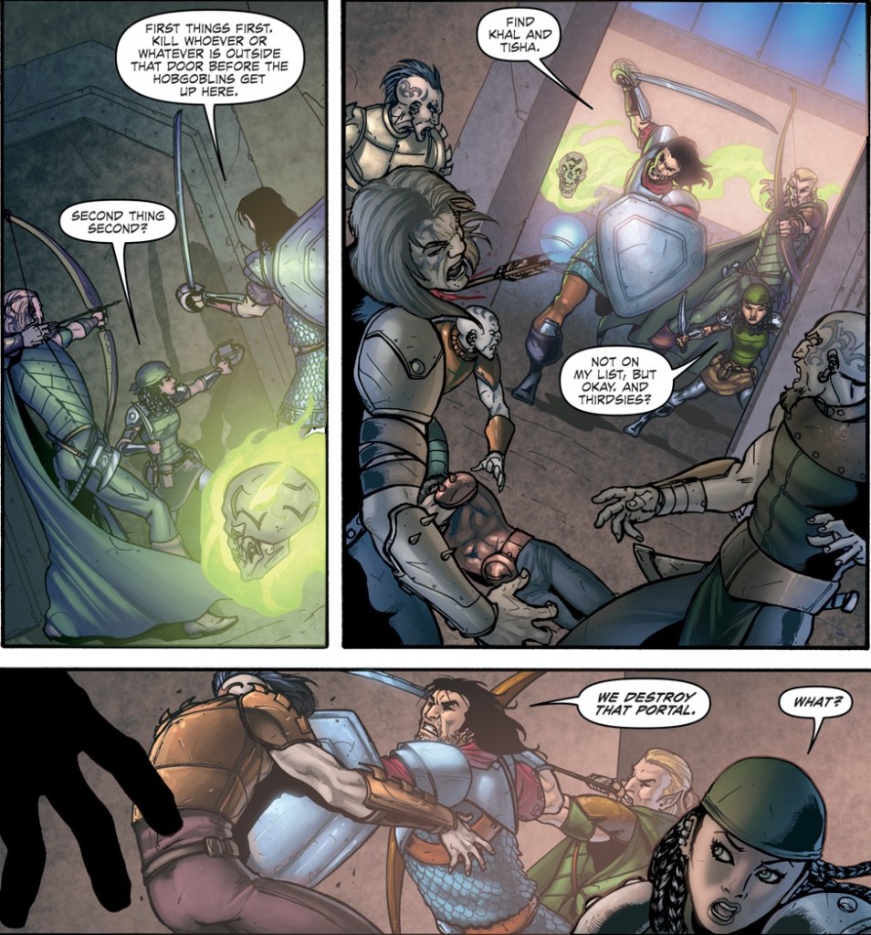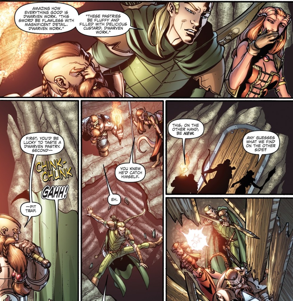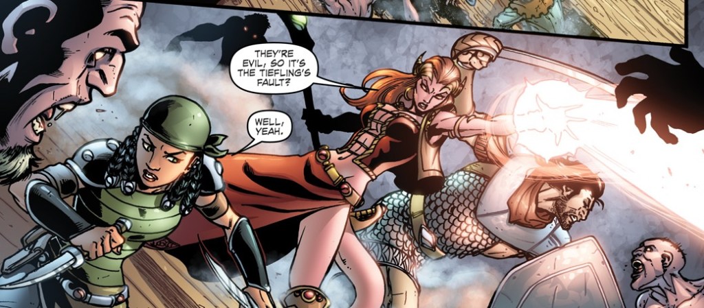 For better or worse, the “Fell’s Five” comics followed Wizards of the Coast’s vision of D&D as a brand, rather than as a vehicle for the fantasy genre at large. The 4th edition comics are faster-paced, full of sarcastic dialogue, and generally designed like an action movie. These work together well and make it one of my favorite RPG comics, but I sometimes wonder if the reason the comic didn’t last very long is because the good times it offers can be found in virtually any other action-oriented media of the era.