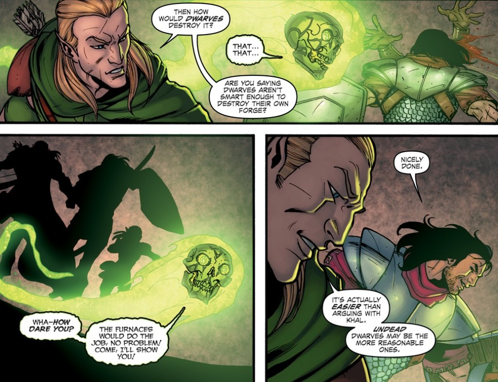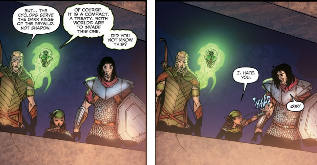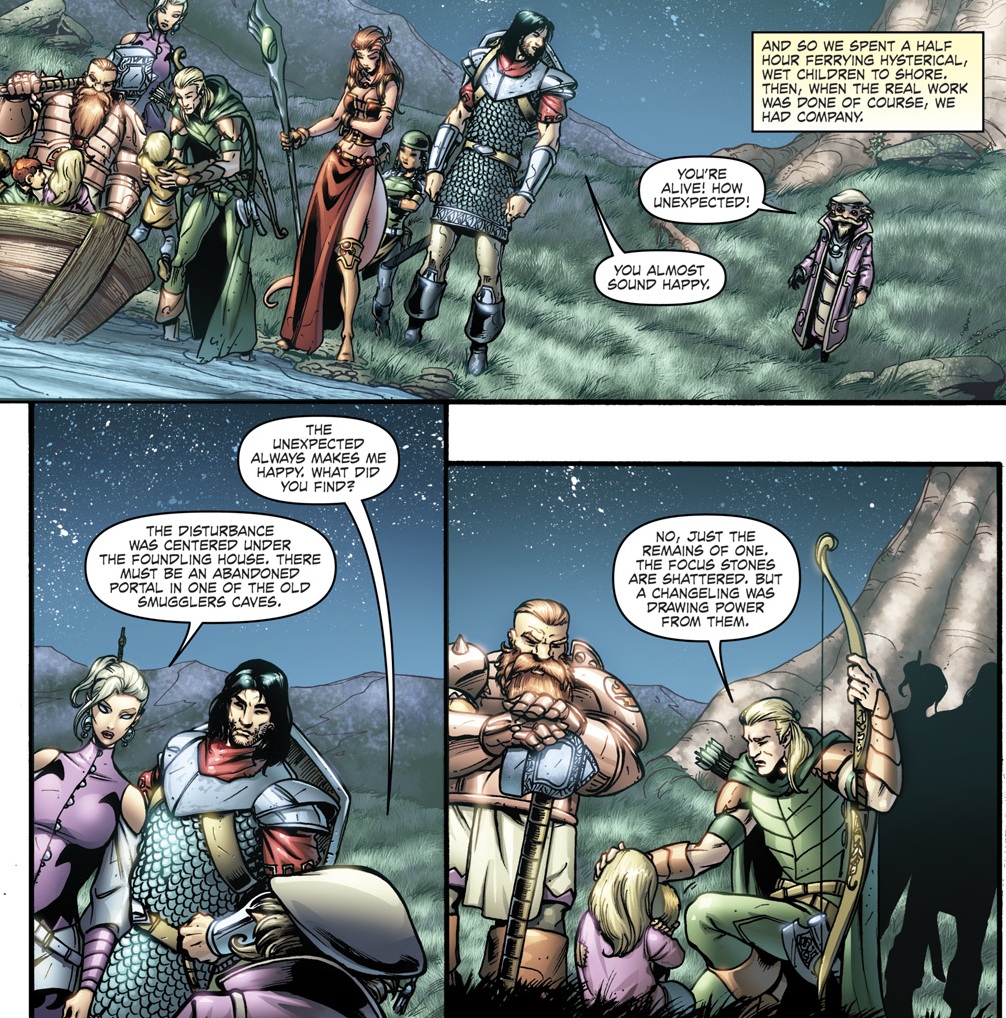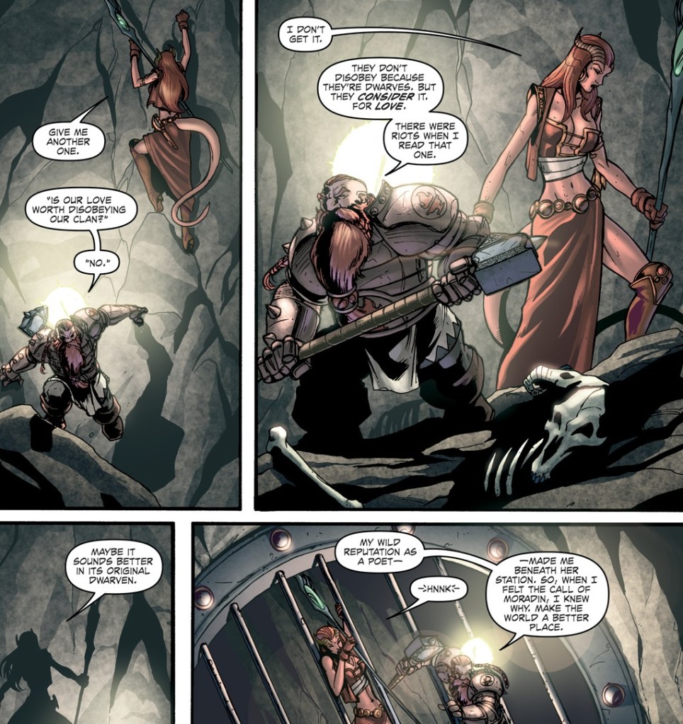 For better or worse, the “Fell’s Five” comics followed Wizards of the Coast’s vision of D&D as a brand, rather than as a vehicle for the fantasy genre at large. The 4th edition comics are faster-paced, full of sarcastic dialogue, and generally designed like an action movie. These work together well and make it one of my favorite RPG comics, but I sometimes wonder if the reason the comic didn’t last very long is because the good times it offers can be found in virtually any other action-oriented media of the era.
