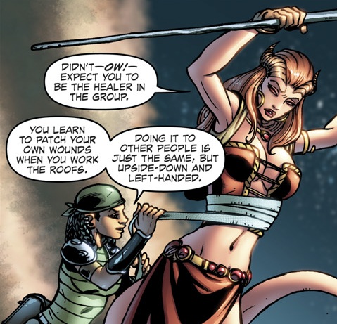 Bree patches Tisha up, showing off again that 4th edition D&D doesn’t rely on clerics for healing.