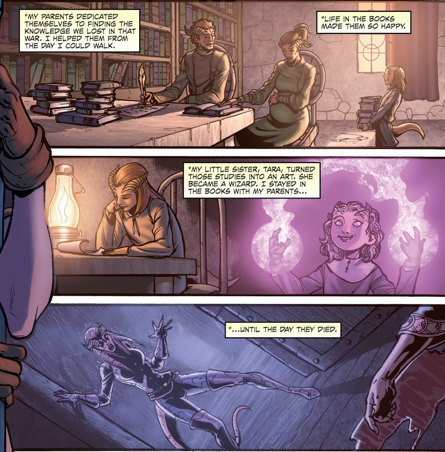 Tisha, meanwhile, is adventuring to avenge the deaths of her parents.