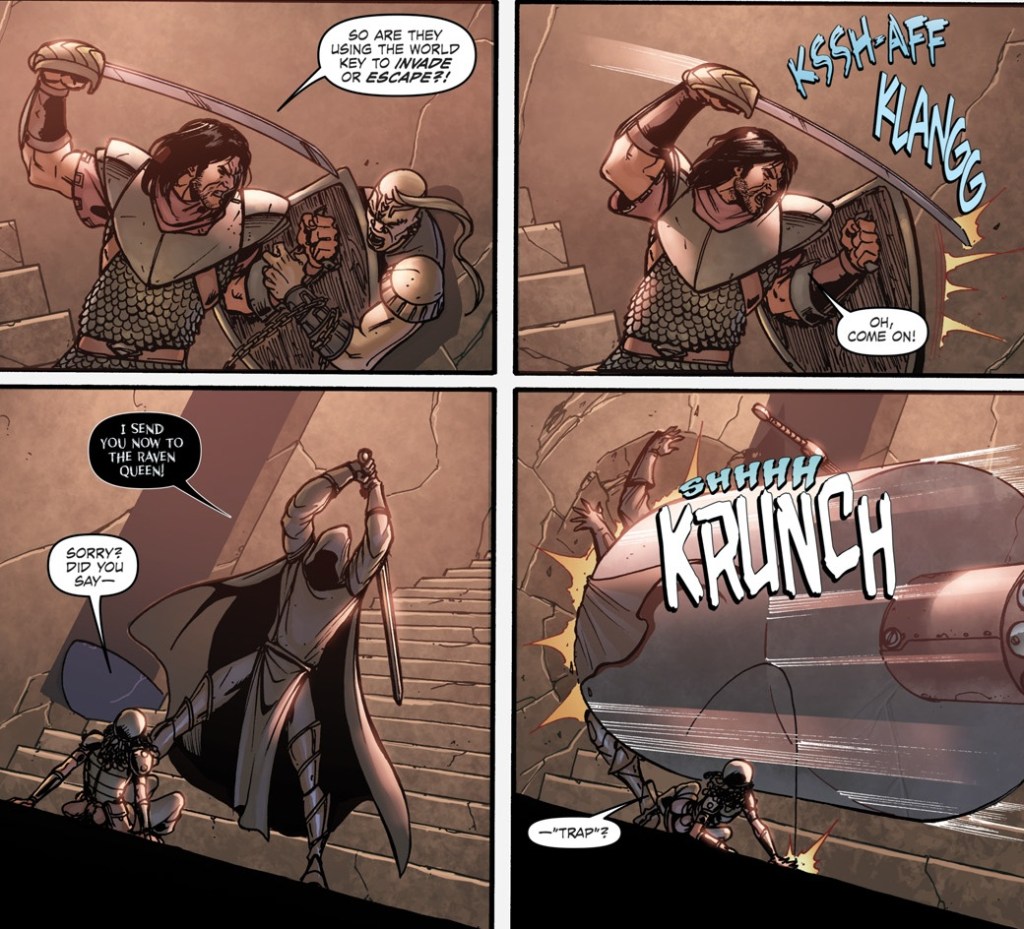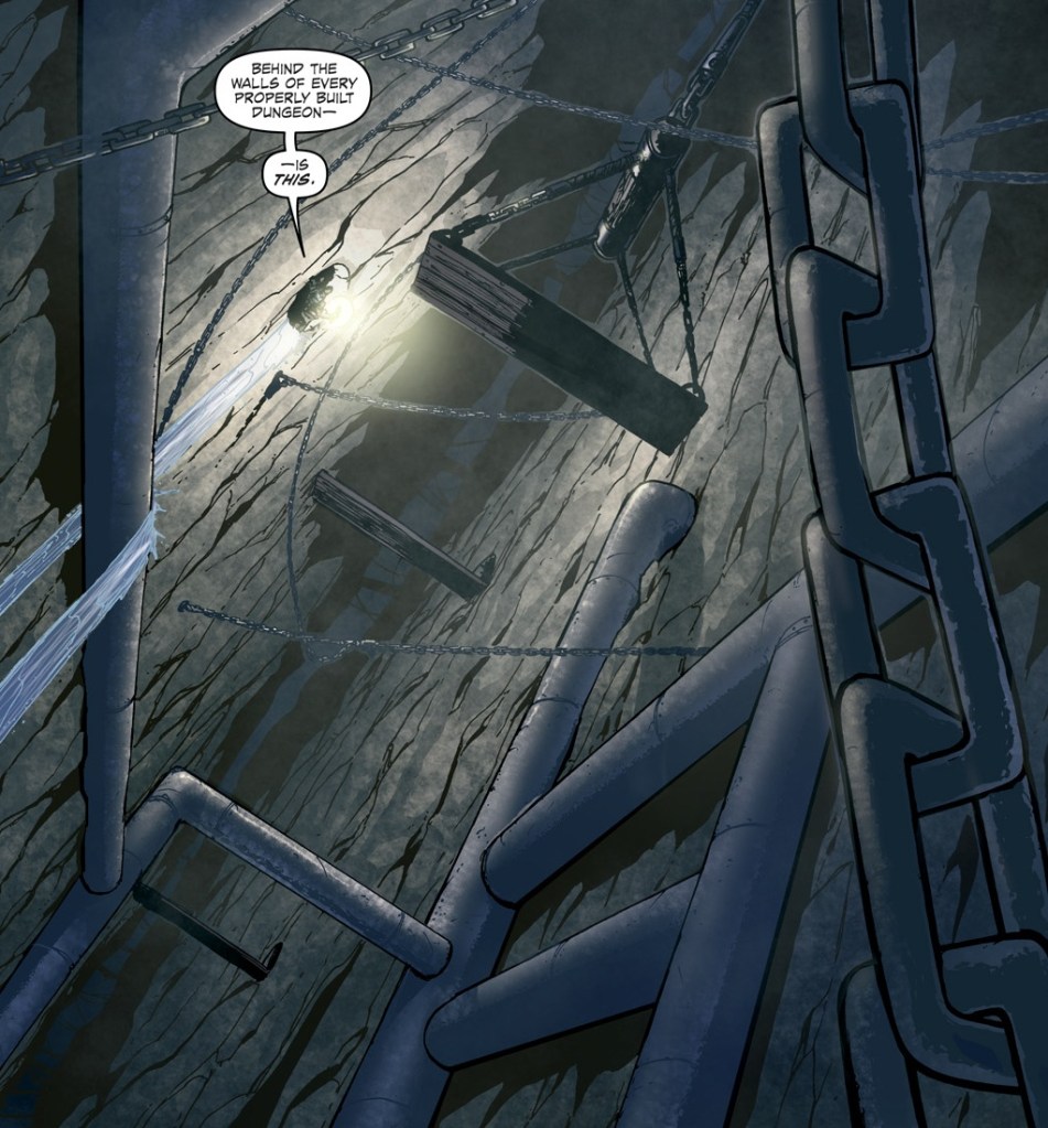 It also gives a ventilation shaft crawl, which basically cements my comparison to this comic (and, by extension, modern D&D) as an action movie with fantasy trappings.